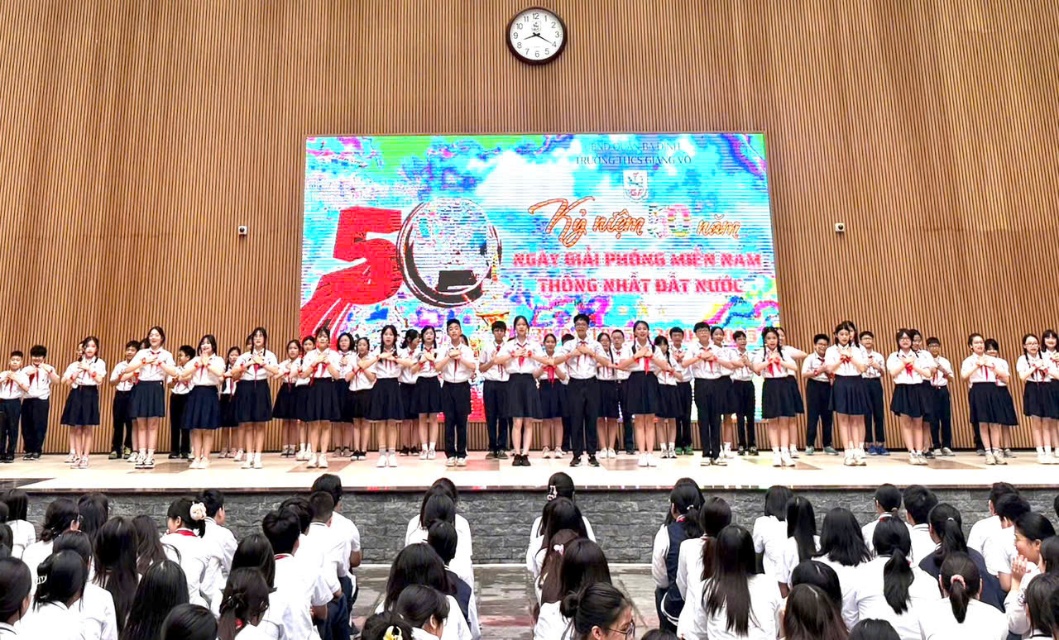 Đại lễ 30/4 không chỉ gợi nhắc ký ức một thời hào hùng, mà còn khơi dậy lòng tự hào và khát vọng hội nhập của thế hệ trẻ. Tiếp bước cha ông, thế hệ trẻ hôm nay nói chung, học sinh trường THCS Giảng Võ nói riêng đang ngày ngày học tập, luyện rèn, để viết tiếp những trang sử của thời đại đổi mới, sáng tạo và hội nhập.