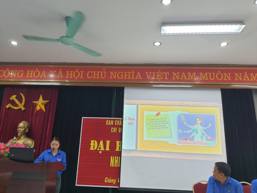 Tại Đại hội, các đoàn viên đã được lắng nghe những tham luận đầy tâm huyết. Trong tham luận “Thực trạng giáo viên trẻ tham gia Chi Đoàn Giáo viên hiện nay”, đồng chí Trần Thị Mai Hương đã mạnh dạn chỉ ra những mặt hạn chế của Chi đoàn như có nhiều đoàn viên là nữ có con nhỏ nên khó khăn trong việc tham gia các hoạt động, đôi khi tính tự giác, chủ động công tác chưa cao làm ảnh hưởng tới chất lượng sinh hoạt ….