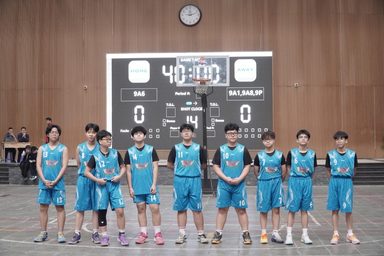 Buổi sáng, sân bóng rổ nhà trường thực sự “bùng nổ” với trận chung kết giữa 9A6 và liên quân 9A1-9A8-9P – hai đội bóng xuất sắc nhất sau hành trình thi đấu đầy thử thách. Trận đấu diễn ra với nhịp độ cao, các cầu thủ liên tục tranh chấp quyết liệt, tổ chức tấn công nhanh và phòng ngự chặt chẽ. Thế trận giằng co, rượt đuổi tỉ số nghẹt thở khiến bầu không khí trên sân trường luôn căng tràn cảm xúc.