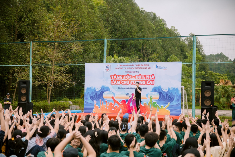 Bên cạnh những giây phút trang nghiêm, thành kính, các em học sinh đã có khoảng thời gian tràn đầy niềm vui, sôi nổi, hào hứng khi tham gia các hoạt động Team Building ngoài trời với khẩu hiệu “Tăng tốc – Bứt phá – Làm chủ tương lai”.