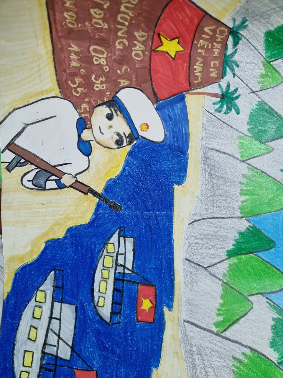 Kết quả, 112 bức tranh xuất sắc đã được lựa chọn để tiếp tục dự thi cấp Quận. Chia sẻ về tác phẩm của mình, học sinh Lương Thanh Nga, lớp 8A1, bày tỏ: “Khi tham gia vẽ tranh, con có thêm nhiều cơ hội để bày tỏ lòng yêu nước cũng như sự biết ơn đối với các chú bộ đội. Ngoài ra, con cũng tìm hiểu thêm được nhiều thông tin bổ ích về biển đảo quê hương”.