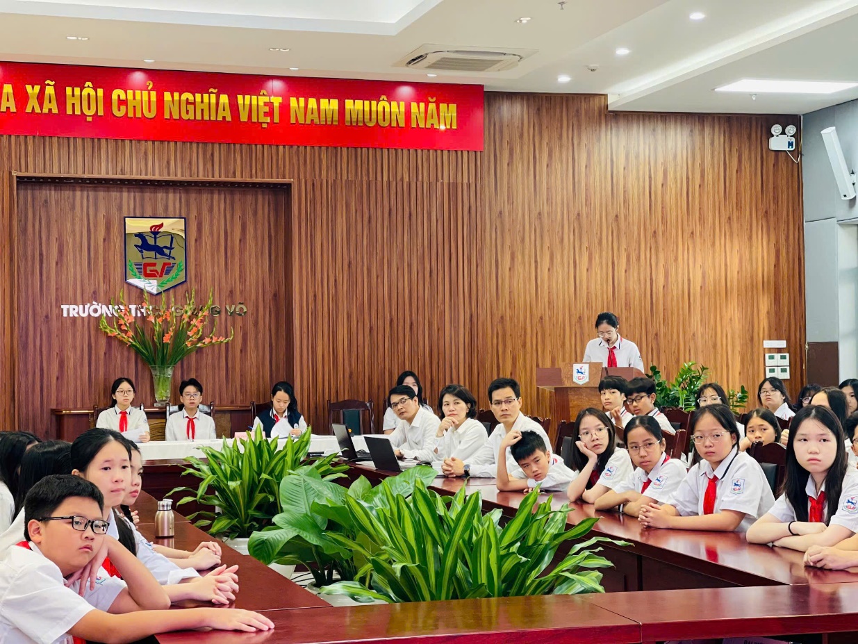 Phát biểu tại Đại hội, các học sinh Trần Ngọc Bảo Hân - chi đội 8A2, Nguyễn Khôi Uyên - chi đội 8A11 và Phạm Hoàng Trang Nguyên - chi đội 8A10 đã tích cực bổ sung và hoàn thiện phương hướng khi đưa ra các tham luận bổ ích về học tập và rèn luyện, công tác xây dựng Đội vững mạnh và làm từ thiện. Các tham luận đã nêu lên một số ý kiến sáng tạo về công tác làm từ thiện. Với ý tưởng “Làm từ thiện chính là làm giàu cho tâm hồn,” tham luận lần này mang đến điểm mới mẻ với đề xuất kết hợp giữa các chuyến tham quan dã ngoại và hoạt động tình nguyện. Đây không chỉ là cơ hội để học sinh gắn kết với cộng đồng, mà còn giúp các em trải nghiệm sâu sắc giá trị của sự sẻ chia, nuôi dưỡng lòng nhân ái và làm phong phú thêm hành trang trưởng thành.