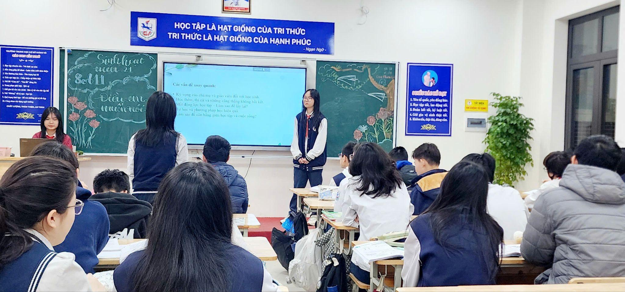 Ngày 10/02/2025, tại trường THCS Giảng Võ đã diễn ra buổi sinh hoạt với chủ đề “Điều em muốn nói” – một hoạt động ý nghĩa nhằm góp phần xây dựng “Trường học hạnh phúc”.