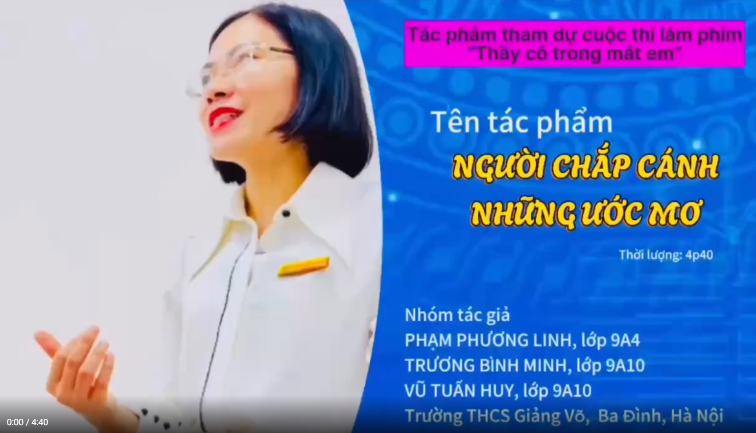 Trong khuôn khổ cuộc thi làm phim với chủ đề “Thầy cô trong mắt em” năm 2024 do Công đoàn Giáo dục Việt Nam tổ chức, tác phẩm “Người chắp cánh những ước mơ” của nhóm học sinh trường THCS Giảng Võ đã giành được giải Ba với một tác phẩm xúc động về tình thầy trò.