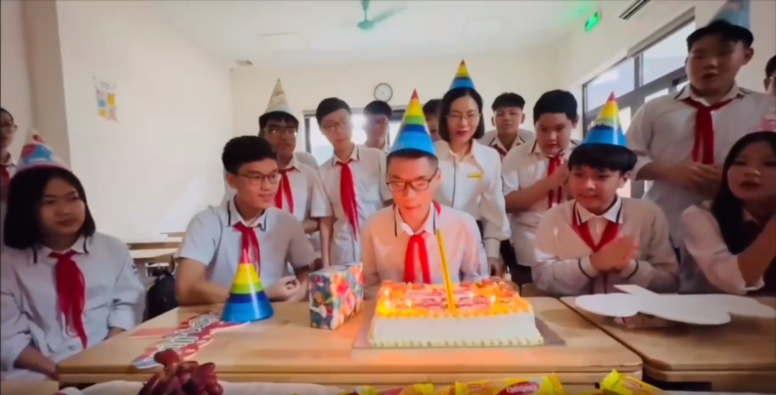 Hình ảnh trích từ phim – Cô Hương Quỳnh cùng tập thể lớp 9A10 tổ chức sinh nhật cho Hoàng Minh