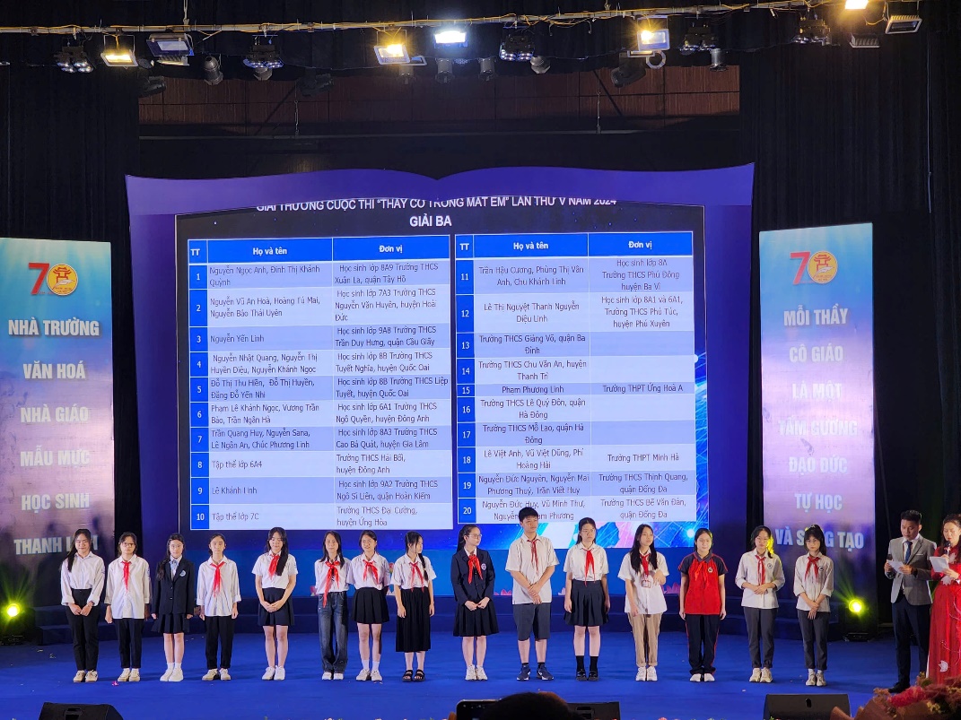 Cuộc thi “Thầy cô trong mắt em” năm 2024 với chủ đề “Thầy giáo, cô giáo của tương lai”, được triển khai từ tháng 5/2022 – 7/2024, thu hút hàng ngàn tác phẩm dự thi. Mỗi tác phẩm là một video clip dài tối đa 5 phút, là câu chuyện kể về một thầy cô giáo, người đã tạo cho tác giả sự ngưỡng mộ và khâm phục, biết ơn; hoặc đã ảnh hưởng mạnh mẽ, tích cực tới đồng nghiệp, tới học sinh, xã hội; hoặc cách nghĩ, cách làm mới, hiện đại của thầy cô… đã hướng tới sự phát triển chuyên môn, nghề nghiệp, sự phát triển của trường học, của ngành giáo dục, đáp ứng những yêu cầu đặt ra trong tương lai.