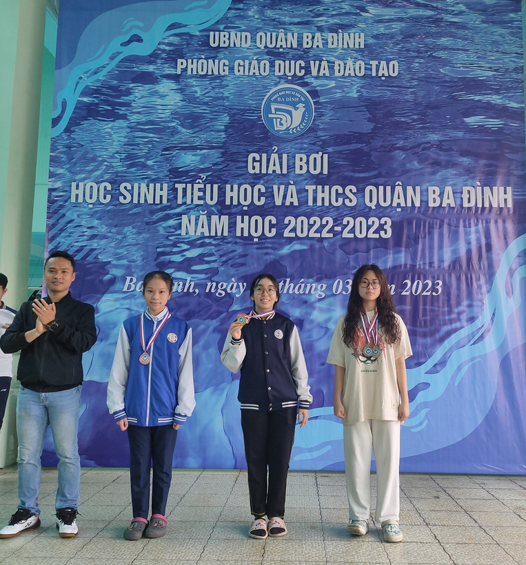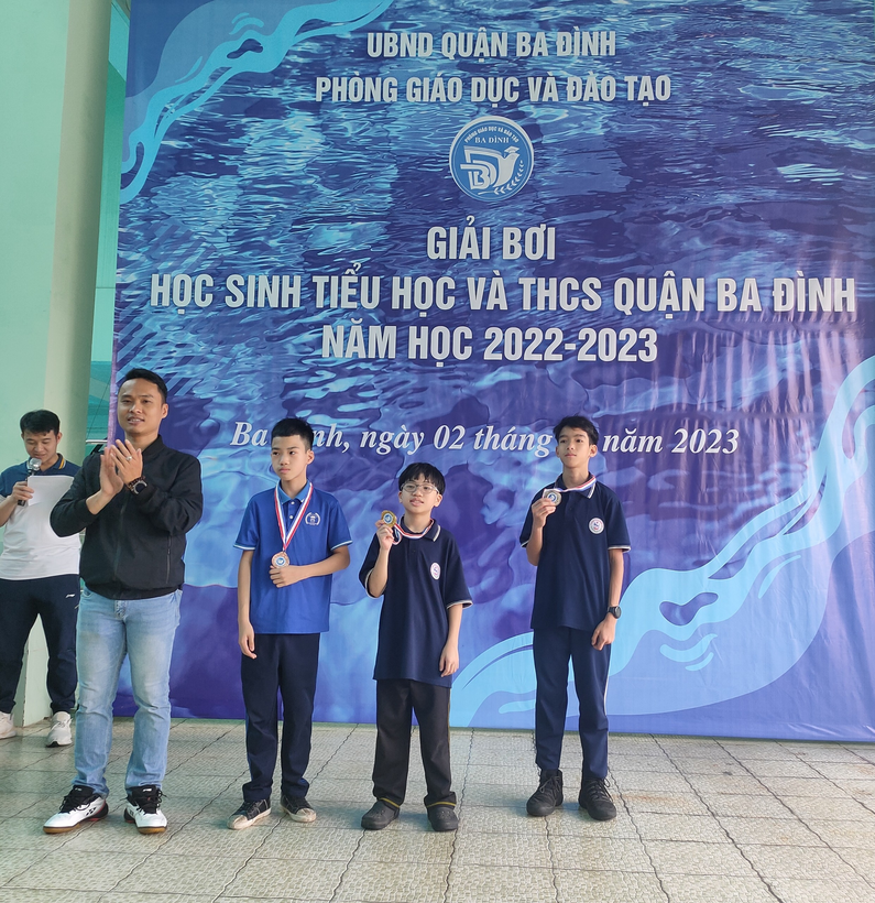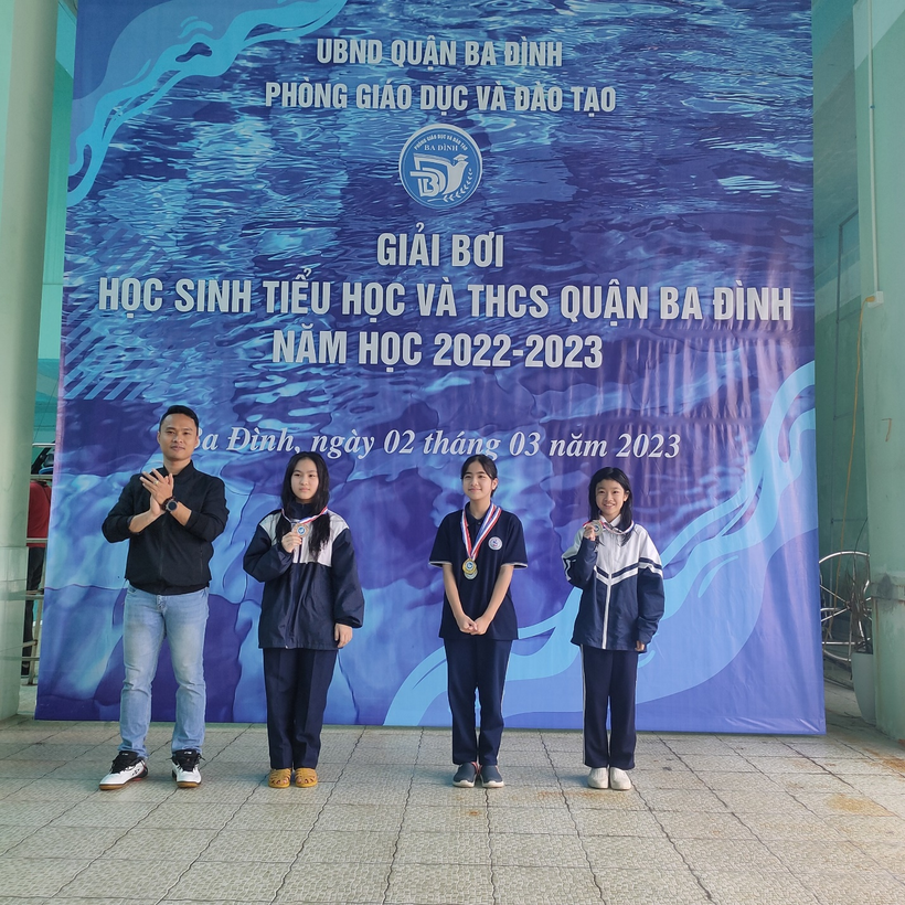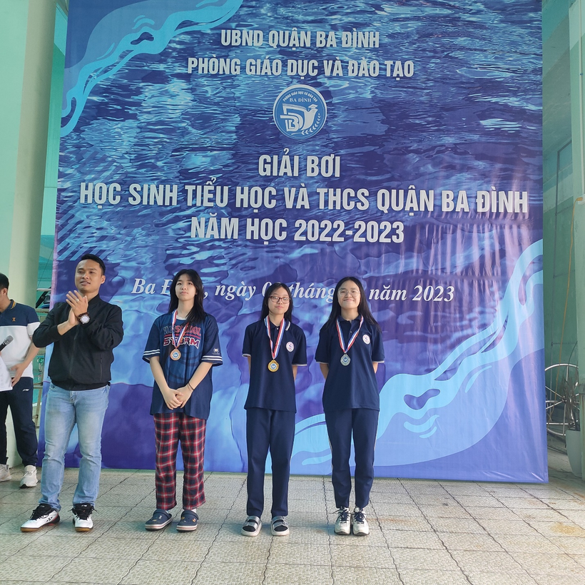 Ngày 02/3/2023, Giải bơi học sinh Tiểu học và THCS quận Ba Đình đã diễn ra sôi nổi với sự tham dự của hơn 200 vận động viên nhí. Đội tuyển bơi trường THCS Giảng Võ có 19 em tham gia dự thi và xuất sắc mang về 24 huy chương, trong đó có 10 huy chương Vàng, 12 huy chương Bạc, 2 huy chương ĐồngNhất toàn đoàn. Đặc biệt, có những em học sinh đã giành được 2 huy chương Vàng: