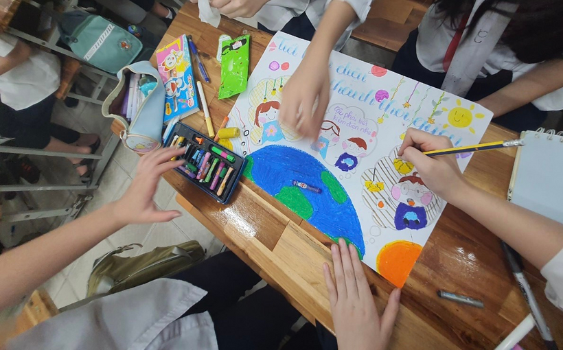 Học sinh vẽ tranh hưởng ứng sự kiện “ Giờ Trái đất” năm 2023