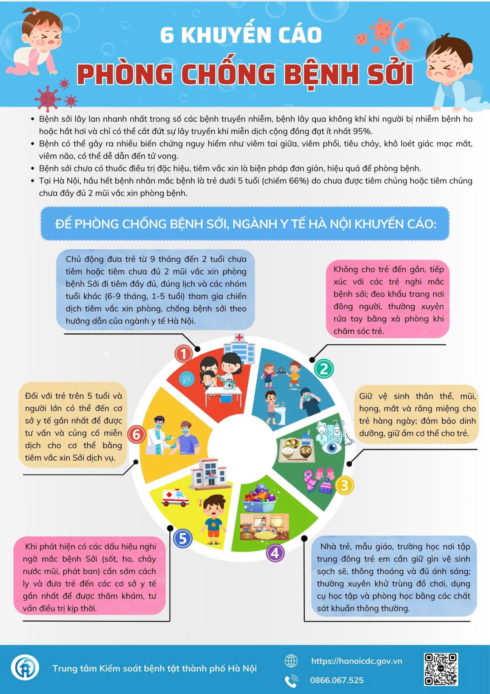 Dưới đây là 6 khuyến cáo về phòng chống bệnh sởi của ngành Y tế Hà Nội: