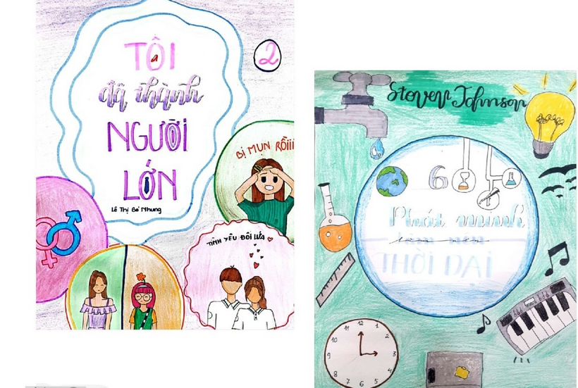 Không chỉ dừng lại ở hình thức báo cáo sách, các em học sinh còn cùng nhau thể hiện khả năng thiết kế bìa sách. Mỗi bìa sách thể hiện trí tưởng tượng phong phú cũng như những góc nhìn vui tươi của các em.