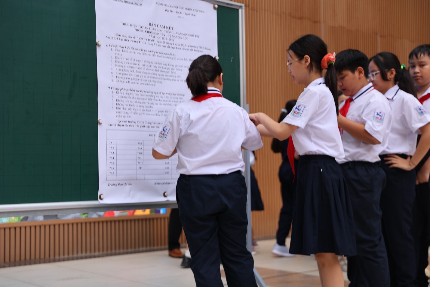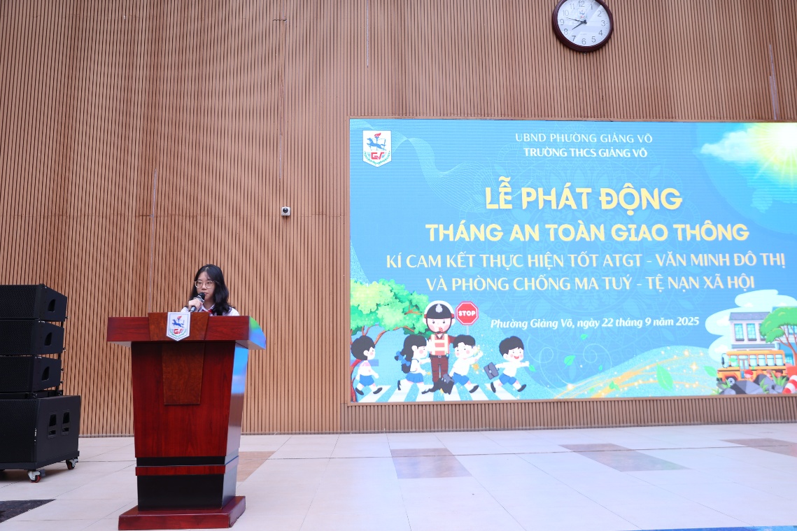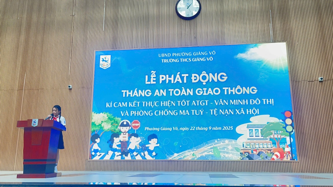 Ngày 22/9/2025, hưởng ứng phong trào thi đua học tập tốt, kỉ luật tốt, chấp hành các nghị định của Chính phủ và Luật an toàn giao thông đường bộ, trường THCS Giảng Võ đã tổ chức lễ phát động “Tháng an toàn giao thông” và ký cam kết trong không khí náo nức tưng bừng của những ngày đầu năm học mới.