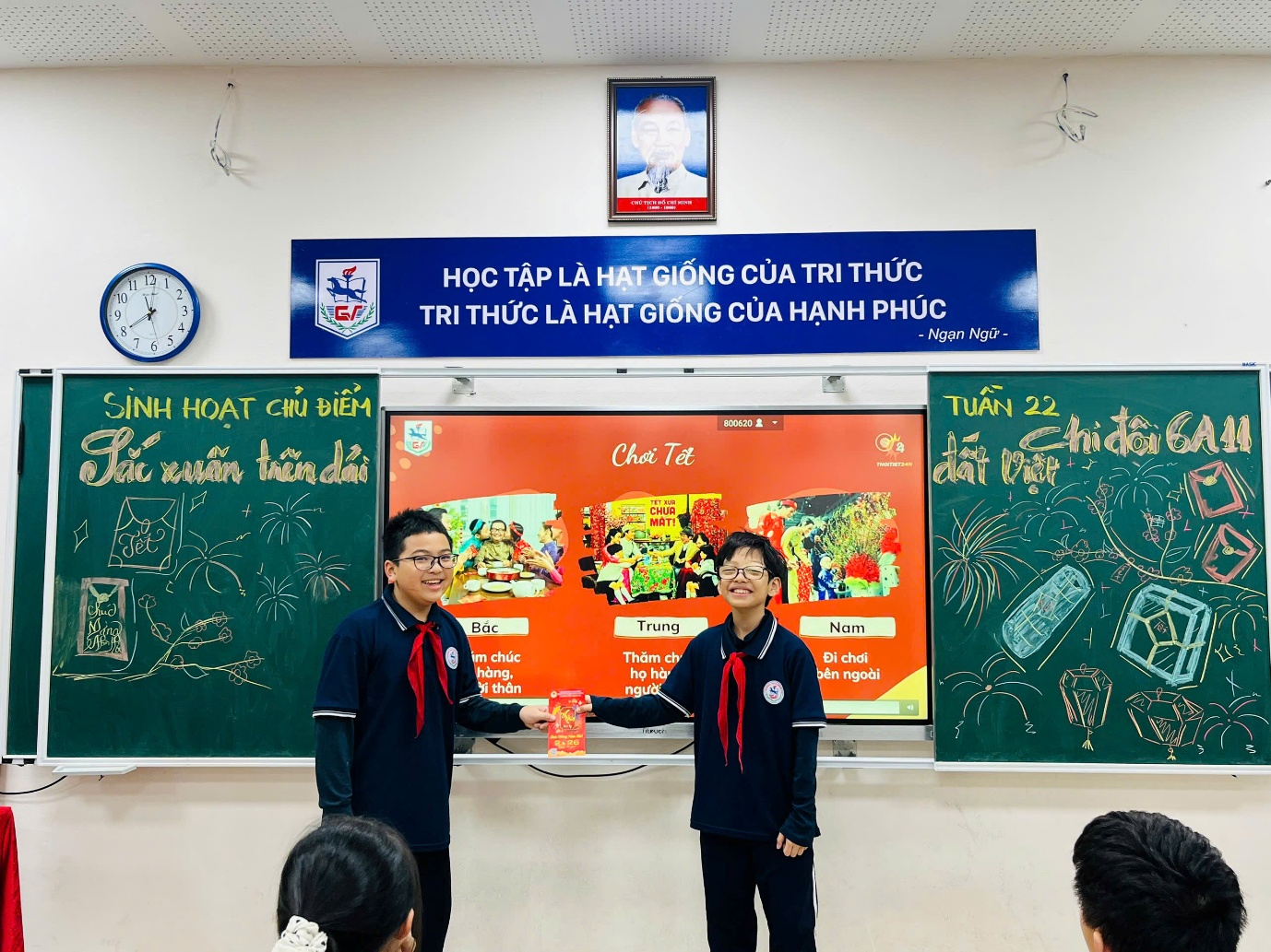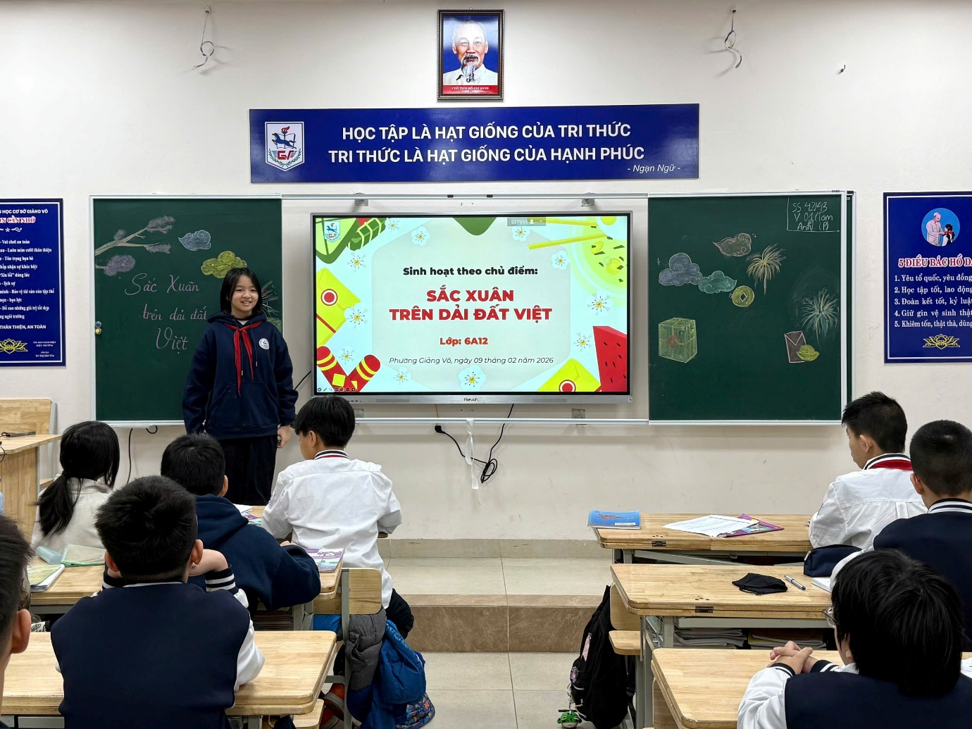 Khép lại tiết sinh hoạt là những lời dặn dò Tết ân cần của thầy cô: mong các em đón Tết vui tươi, an toàn, giữ gìn nếp đẹp truyền thống, biết yêu thương, sẻ chia và nỗ lực học tập trong năm mới. Những lời nhắn gửi ấy như hơi ấm mùa xuân, theo các em bước vào kỳ nghỉ Tết với niềm tin và động lực.