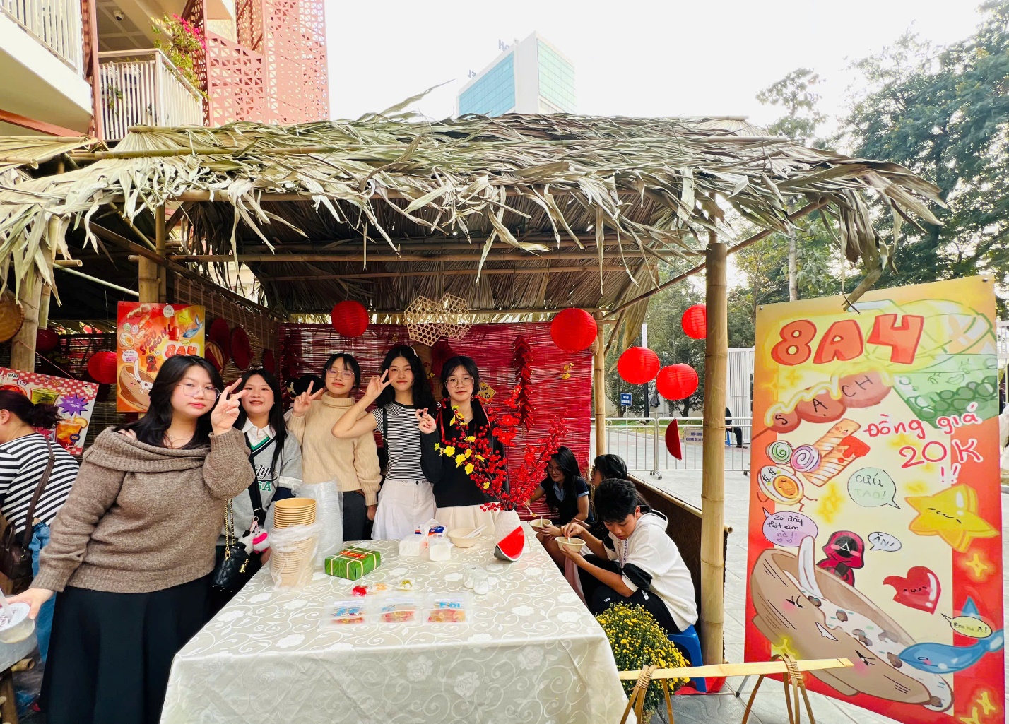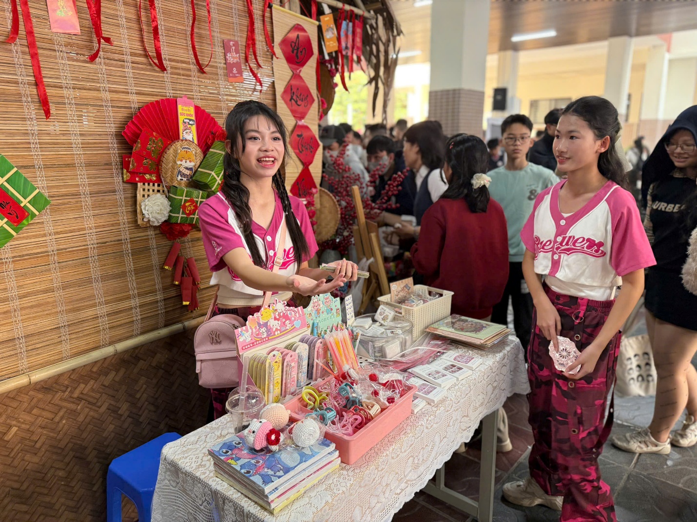Với học sinh khối 8, các em đã kì công chuẩn bị cho Hội chợ Xuân với các gian hàng chu đáo từ đồ ăn thức uống hấp dẫn đến các sản phẩm thủ công sáng tạo. Hội chợ là dịp để các em học hỏi các kĩ năng mềm, hiểu thêm các giá trị văn hóa và tinh thần sẻ chia trong cộng đồng. Các gian hàng rực rỡ đã mang đến không khí Tết sớm cho ngôi trường tươi đẹp.