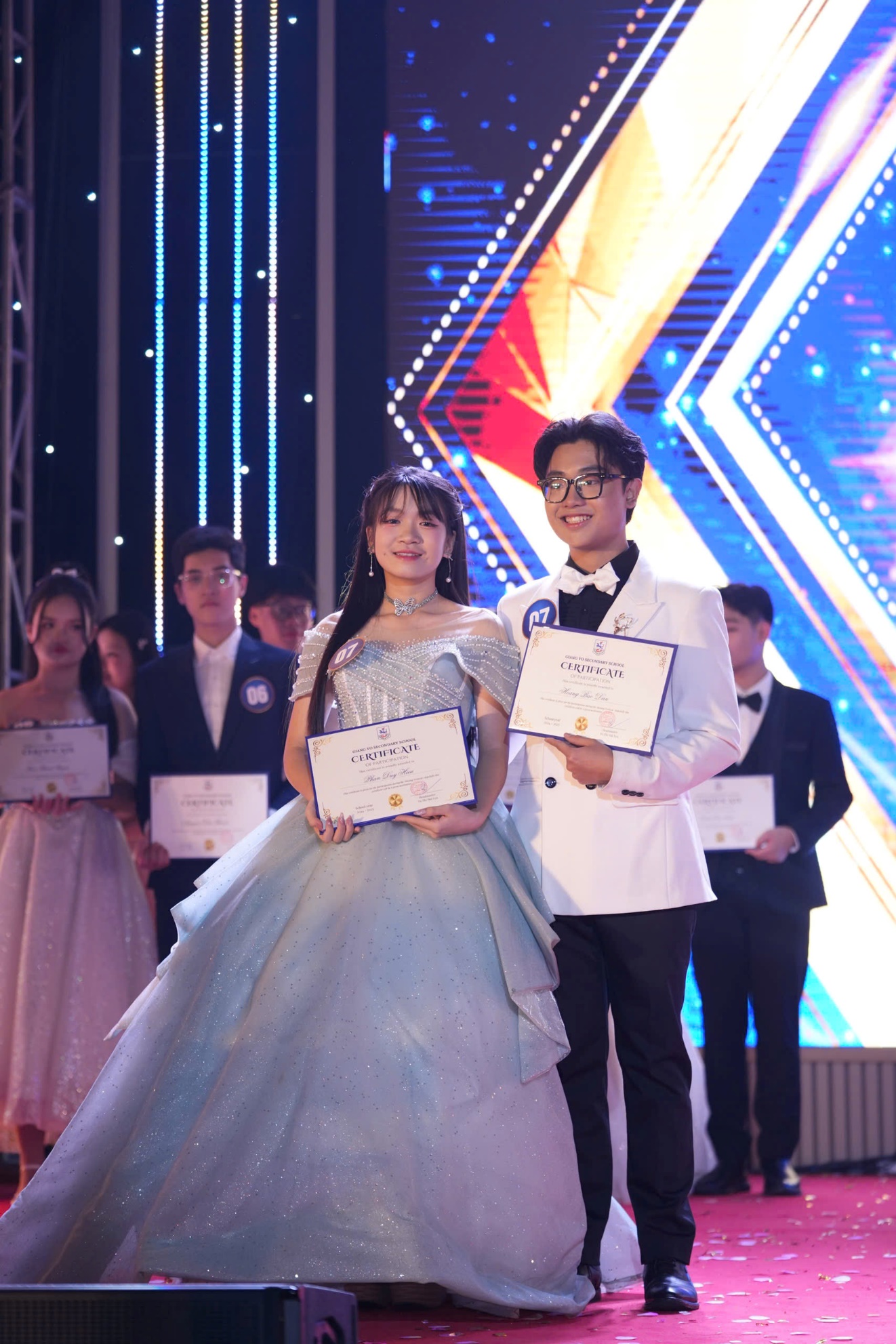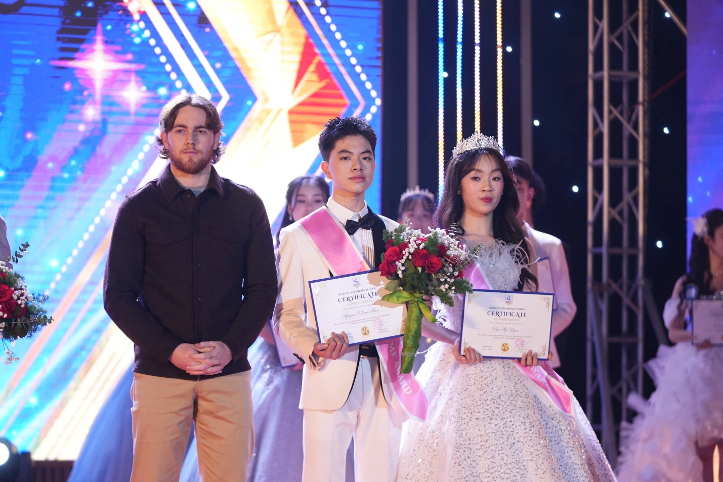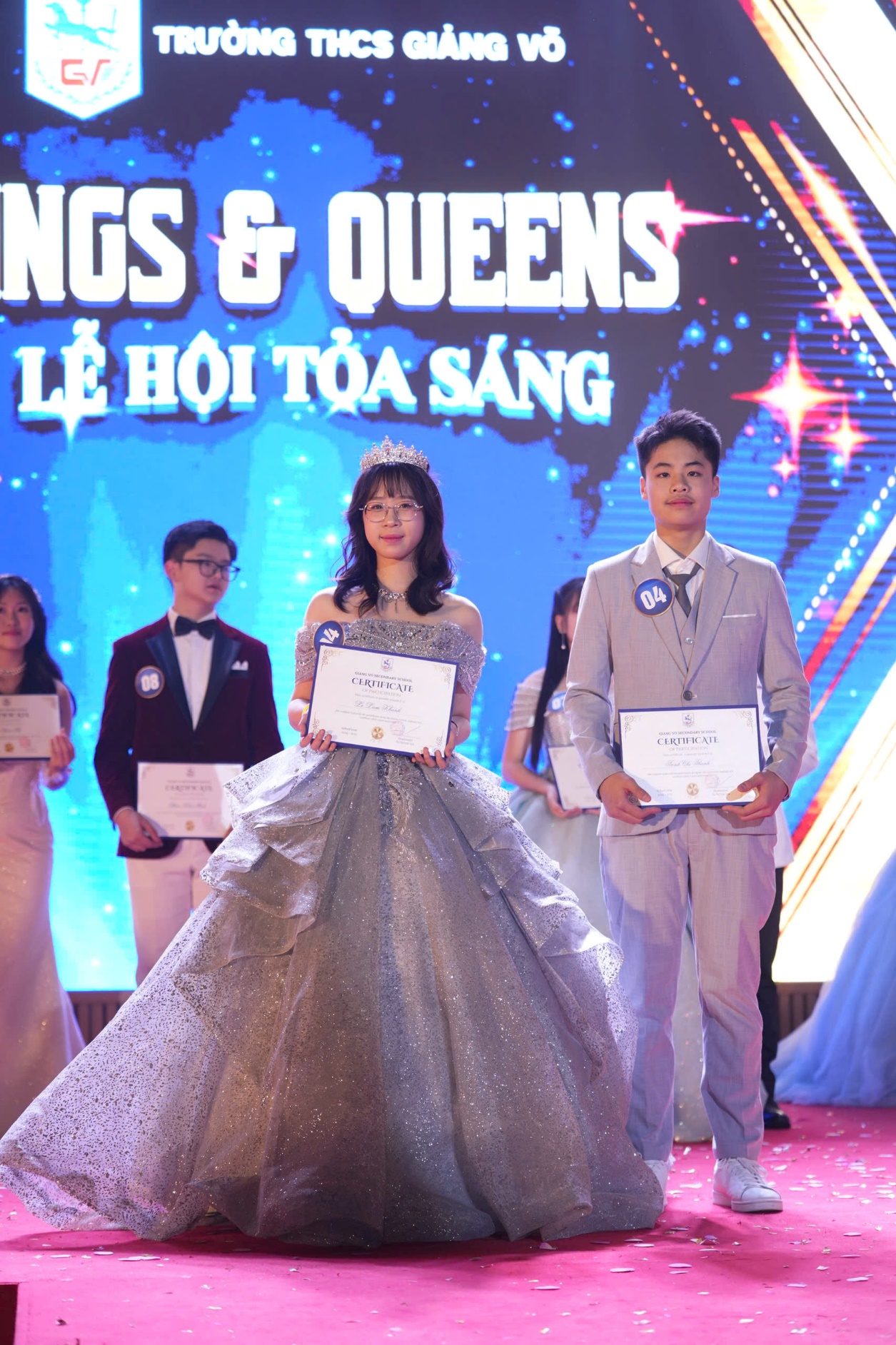 Trước đó, các cặp đôi đã lần lượt trải qua vòng sơ khảo thi thuyết trình tiếng Anh qua video, thể hiện tài năng trong sự kiện tìm kiếm Giang Vo’s got talent 2025, và trong đêm hội này, các em sẽ thực sự tỏa sáng với những màn trình diễn trang phục dạ hội mãn nhãn và những câu trả lời ứng xử tự tin, thông minh…