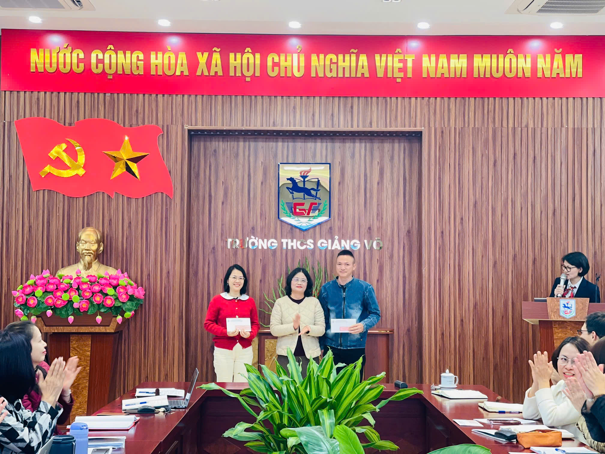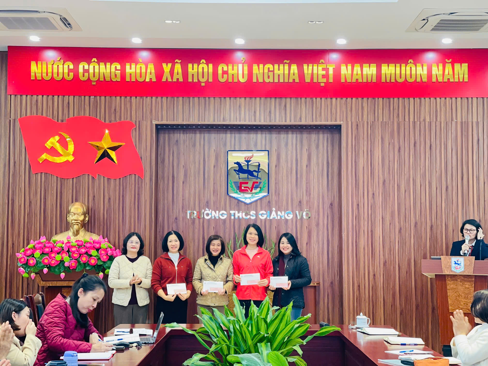 Đại diện hai tổ chuyên môn và khối chủ nhiệm 6, 8 được biểu dương hoàn thành tốt nhiệm vụ