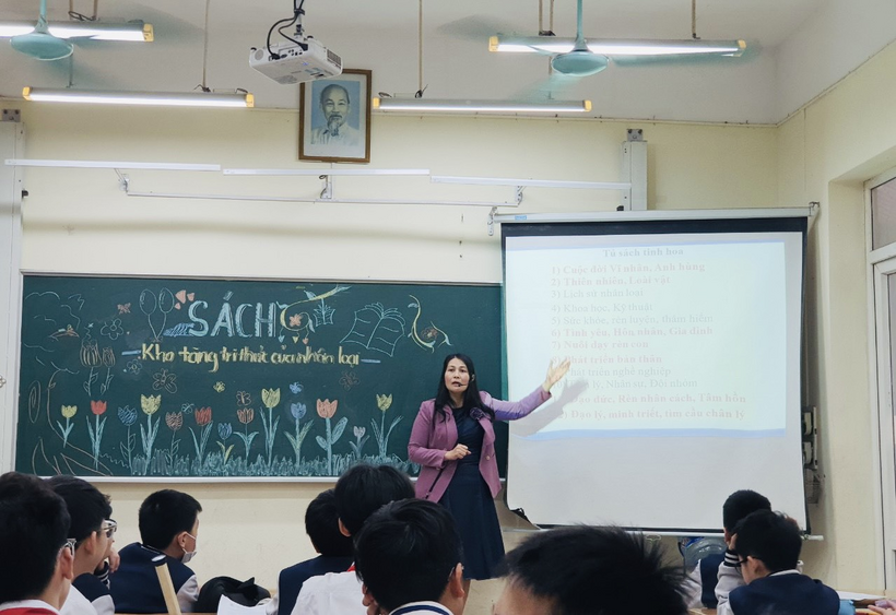 Để phong trào đọc sách lan tỏa đến từng cán bộ, giáo viên, nhân viên, trong các phần thưởng, quà tặng của nhà trường không thể thiếu những cuốn sách ý nghĩa. Đặc biệt, cứ mỗi tuần, vào tiết sinh hoạt thứ hai hoặc thứ 7, các thầy cô giáo đều dành thời gian đọc sách hoặc chia sẻ những cuốn sách hay, những câu chuyện thú vị, hữu ích với học trò. Thầy cô chính là những tấm gương lan tỏa tình yêu sách và văn hóa đọc đến mỗi em học sinh. Có lẽ vì vậy mà hoạt động đọc sách của học sinh ngày càng sôi nổi. Các lớp 6A1, 6A2, 6A9, 6A10, 6A16, 6A17, 6A18, 7A1, 7A2, 7A5, 7A9, 7A14, 7A18,… có trên một trăm đầu sách được học sinh tìm đọc trong tháng.
