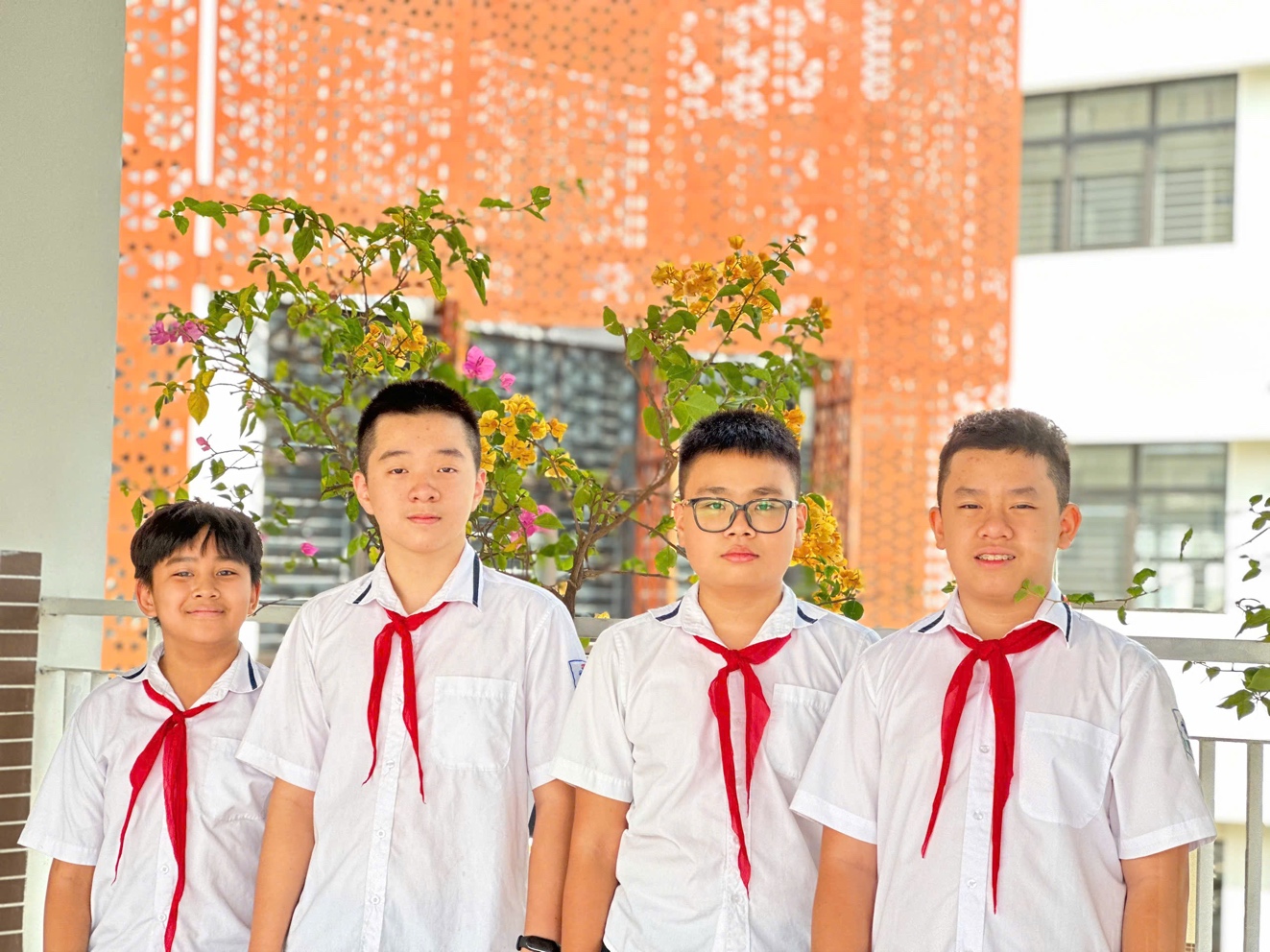 Hình ảnh của các chiến binh “ẵm trọn” huy chương lớp 8A3: Phạm Hiển, Hải Nguyên, Anh Khoa, Thanh Tùng (từ trái qua phải)