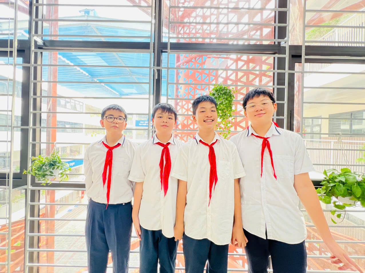 Chân dung các học sinh xuất sắc của lớp 8A2: Thành Hưng, Minh Huy, Việt Cường, Bảo Tuấn (từ trái qua phải)