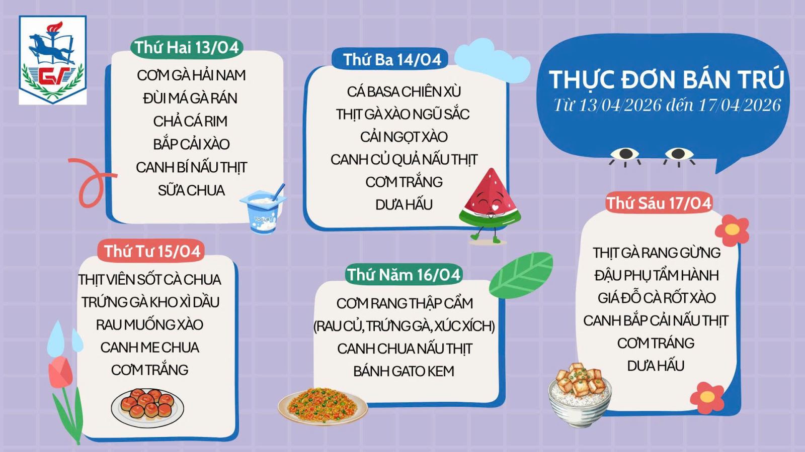 Thực đơn bán trú (Áp dụng từ ngày 13/04 đến 17/04/2026)
