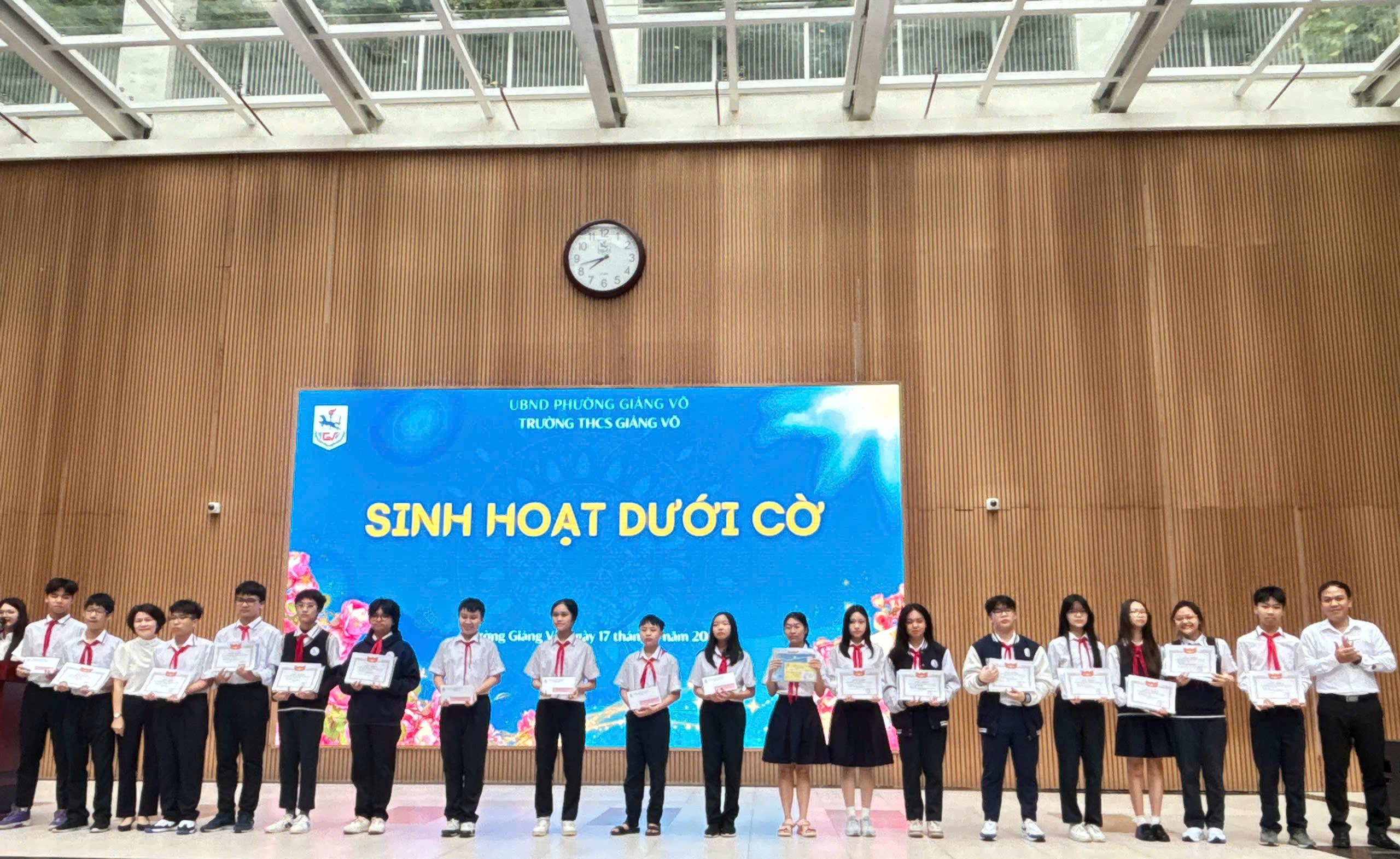 Ngày 17/11/2025, trường THCS Giảng Võ trao thưởng cho 161 em học sinh đạt giải trong kỳ thi chọn Học sinh giỏi lớp 9 các môn Văn hóa cấp Trường. Đây là dịp để nhà trường ghi nhận những nỗ lực bền bỉ và tinh thần học tập nghiêm túc của các em đồng thời khích lệ tinh thần học tập và lan tỏa không khí thi đua trong học sinh toàn trường.