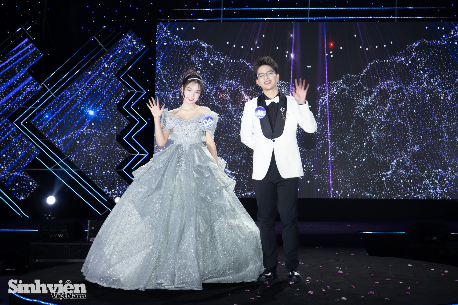 Tại phần thi Trang phục Dạ hội, sân khấu trở nên lộng lẫy với những bộ cánh sang trọng, tinh tế. 13 cặp đôi đã có màn "lột xác" ấn tượng, ghi điểm bởi thần thái rạng rỡ cùng những bước catwalk tự tin, chuyên nghiệp.