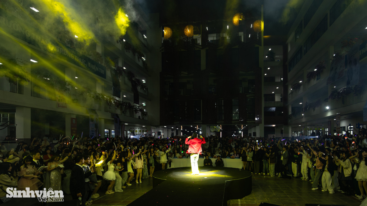 "Sức nóng" của đêm hội được đẩy lên đỉnh điểm với sự xuất hiện của ca sĩ khách mời Long Ngô. Khán giả đã cùng đứng dậy, nhún nhảy và hòa giọng theo những giai điệu sôi động, tạo nên không khí thực sự bùng nổ tại sân trường Giảng Võ.