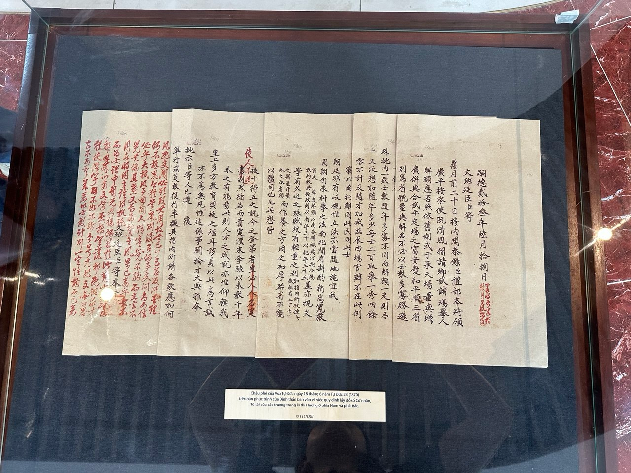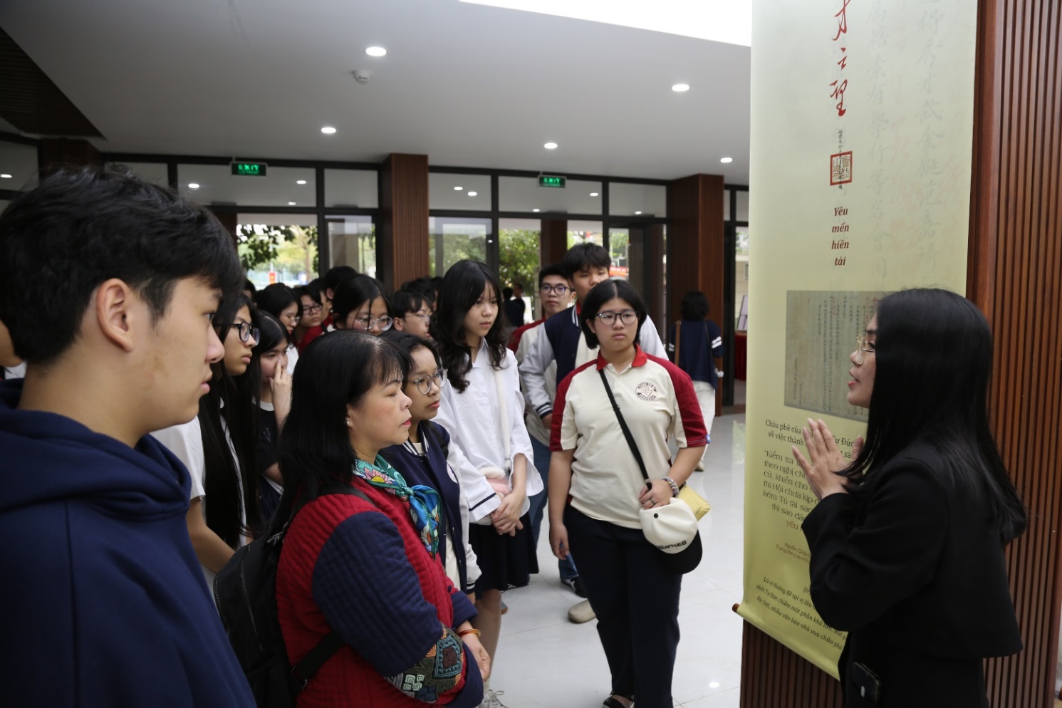 Tại đây, các bạn học sinh lớp đã được tận mắt chiêm ngưỡng những nét châu phê cùng lời chúc hanh thông, dấu triện cát tường của các vị Hoàng đế triều Nguyễn còn được bảo tồn nguyên vẹn trên Châu bản và Mộc bản triều Nguyễn – những tài liệu gốc có giá trị đặc biệt về lịch sử, pháp lý và văn hóa.