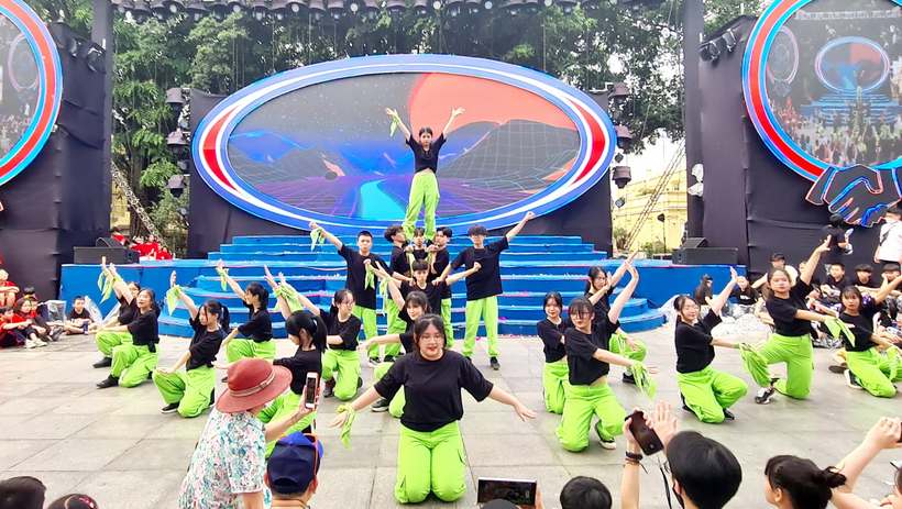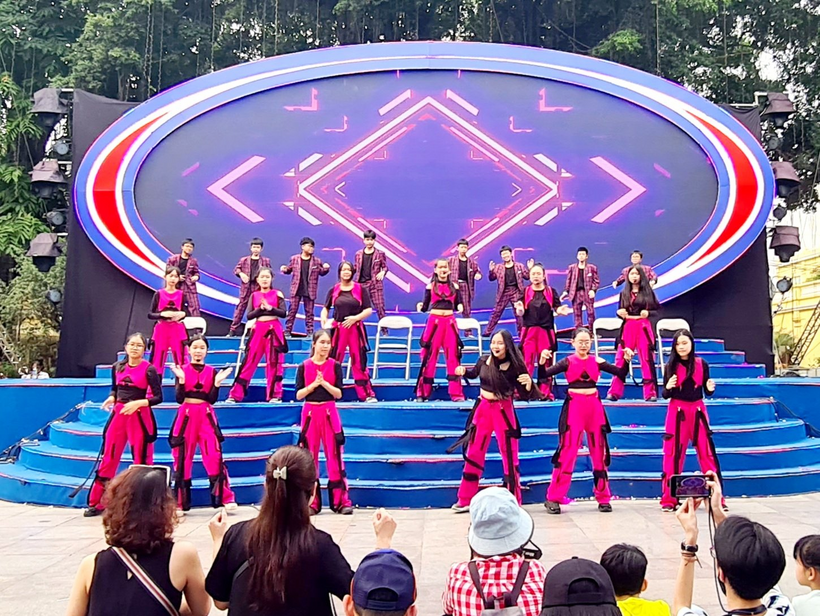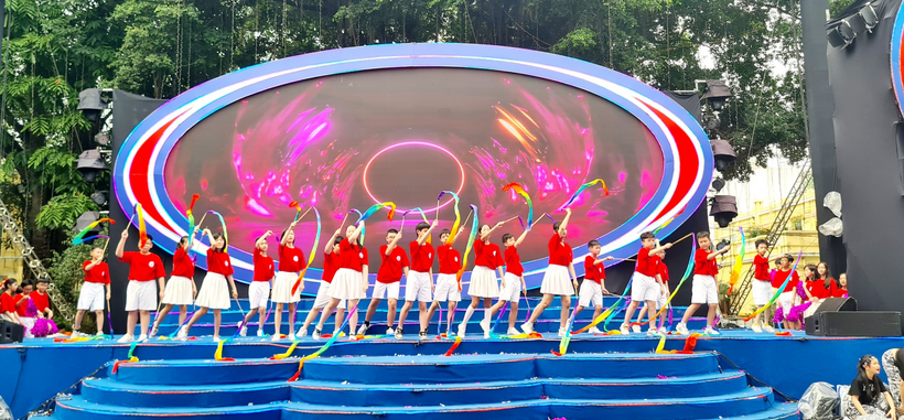 Học sinh lớp 6A21 biểu diễn vũ điệu “J’ai dans le coeur” với thông điệp ý nghĩa: Chúng ta cùng hướng tới tương lai tươi đẹp, tràn ngập ánh mặt trời.