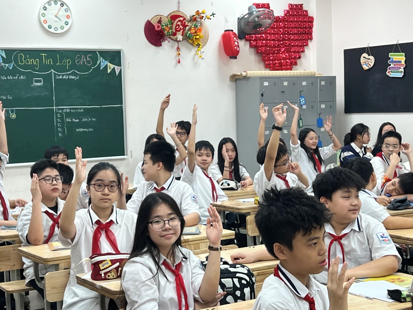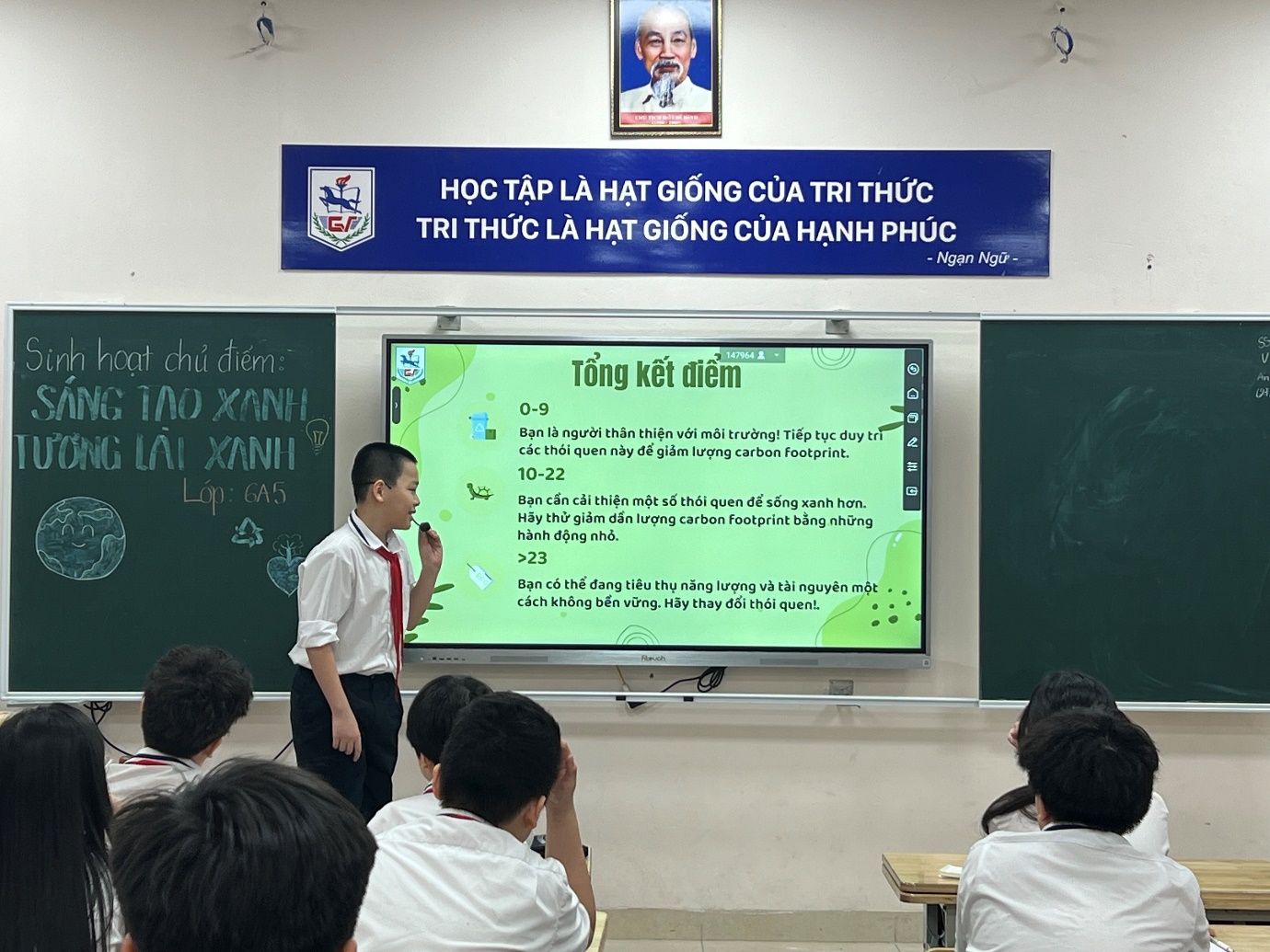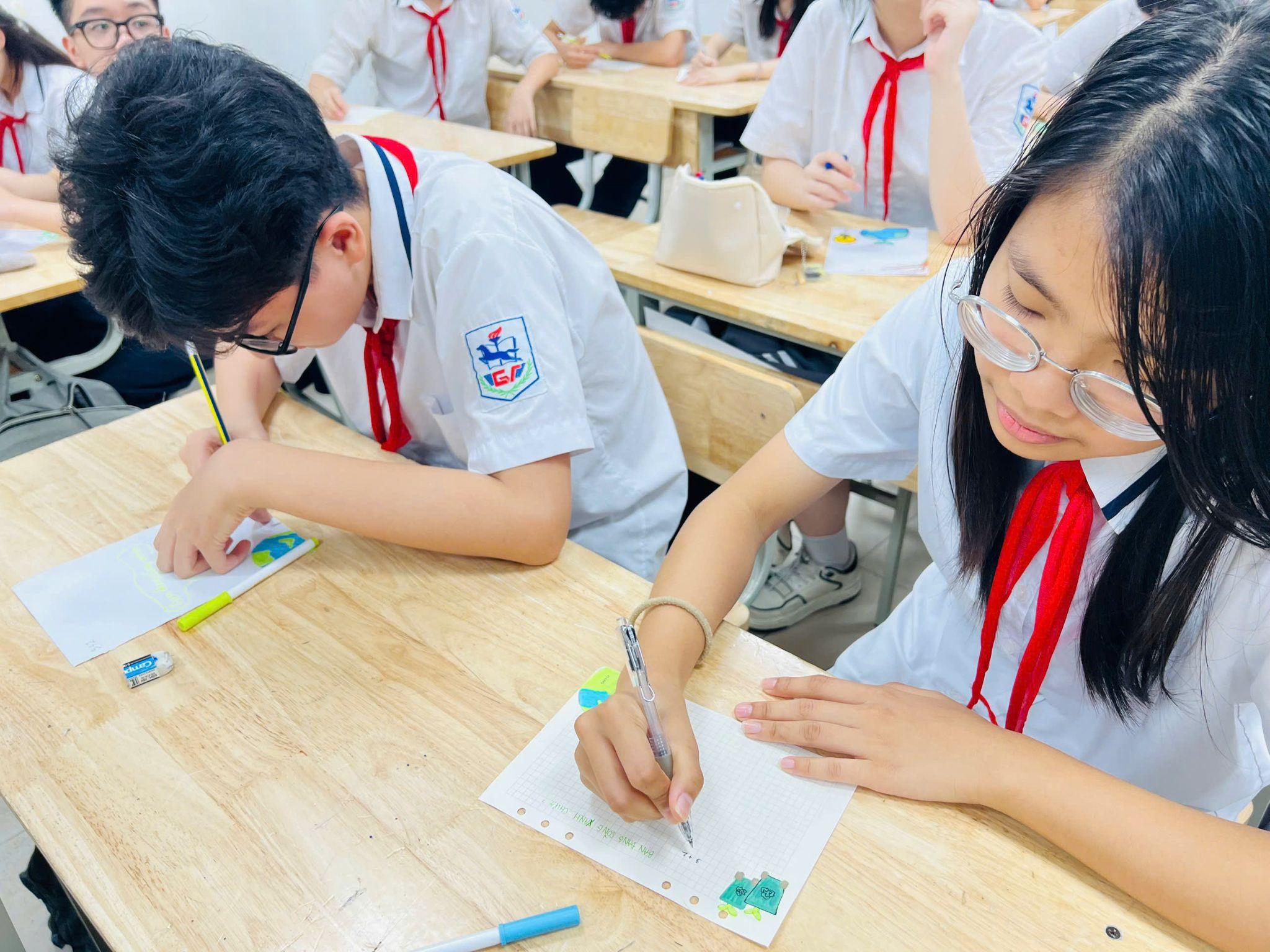 Điểm nhấn của buổi sinh hoạt là phần Thảo luận và đề xuất giải pháp. Học sinh các lớp đã chủ động đưa ra nhiều hành động cụ thể, thiết thực: Tắt thiết bị điện khi không sử dụng, hạn chế túi nilon và đồ nhựa dùng một lần, ưu tiên phương tiện công cộng, thân thiện môi trường, … Không dừng lại ở việc nhận thức, một số lớp còn triển khai hoạt động vẽ tranh và đề xuất giải pháp xanh.
