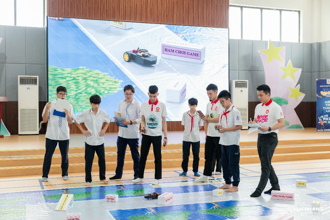 Cuộc đua tài giữa 15 robot đã diễn ra vô cùng hấp dẫn, đầy kịch tính, đòi hỏi sự nhanh nhạy, sáng tạo và phối hợp ăn ý giữa các thành viên. Trong thời gian ngắn nhất, các xe cần di chuyển vào khu vực sạc pin, vượt qua các chướng ngại vật mà không chạm vào chúng và cuối cùng phát tín hiệu lớp học sáng hay tối về cho thiết bị điều khiển.