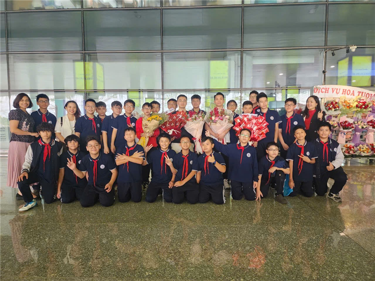 Sau cuộc thi, các em trở về Việt Nam trong vòng tay chào đón của thầy cô giáo và các bạn học sinh trường THCS Giảng Võ
