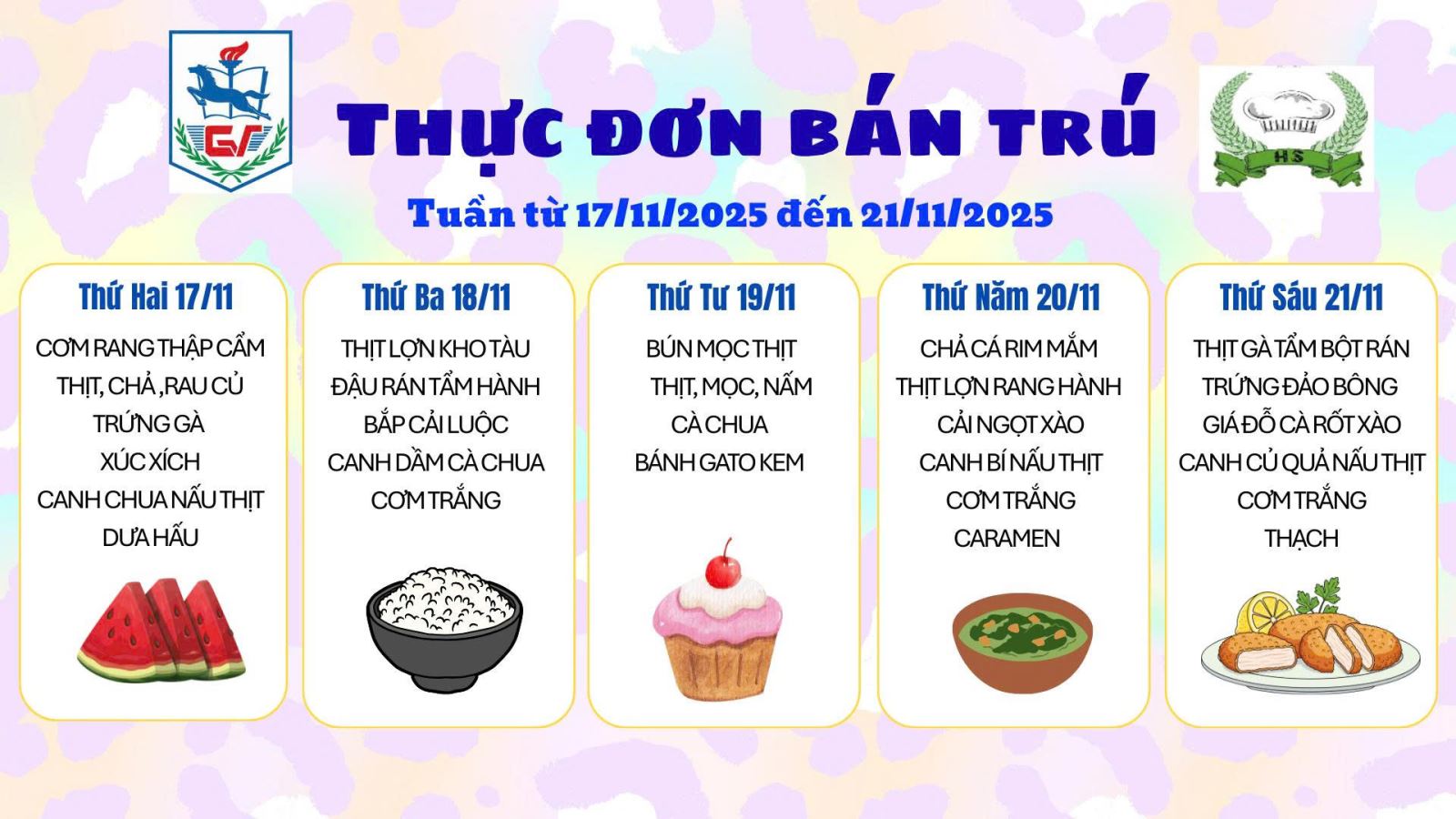 Thực đơn bán trú (áp dụng từ ngày 17/11/2025 - 21/11/2025):
