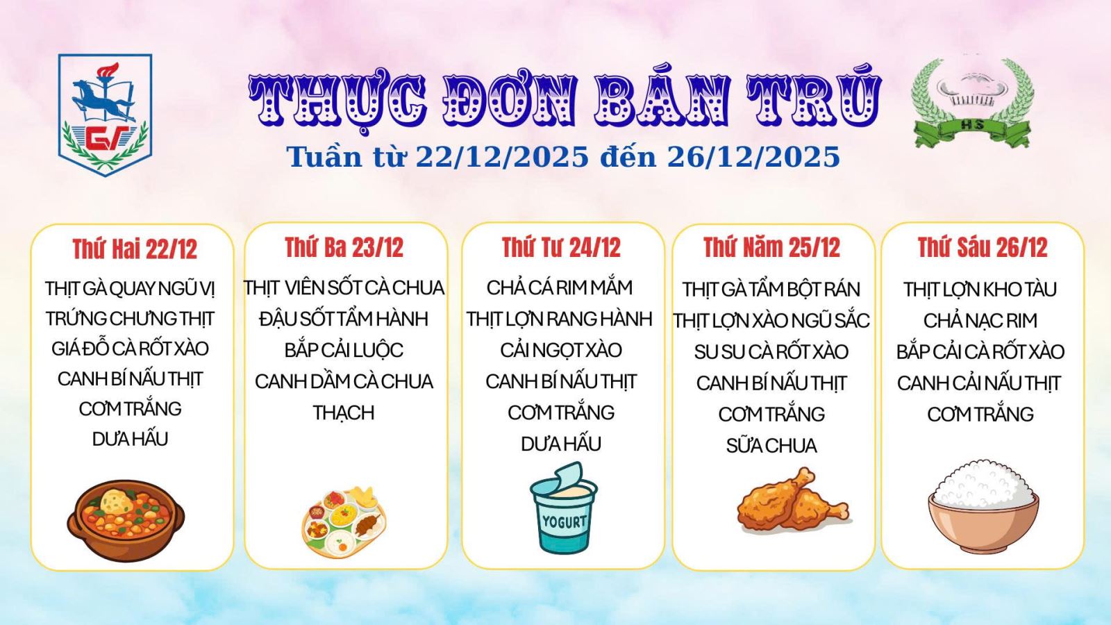 Thực đơn bán trú (áp dụng từ ngày 22/12/2025 - 26/12/2025)