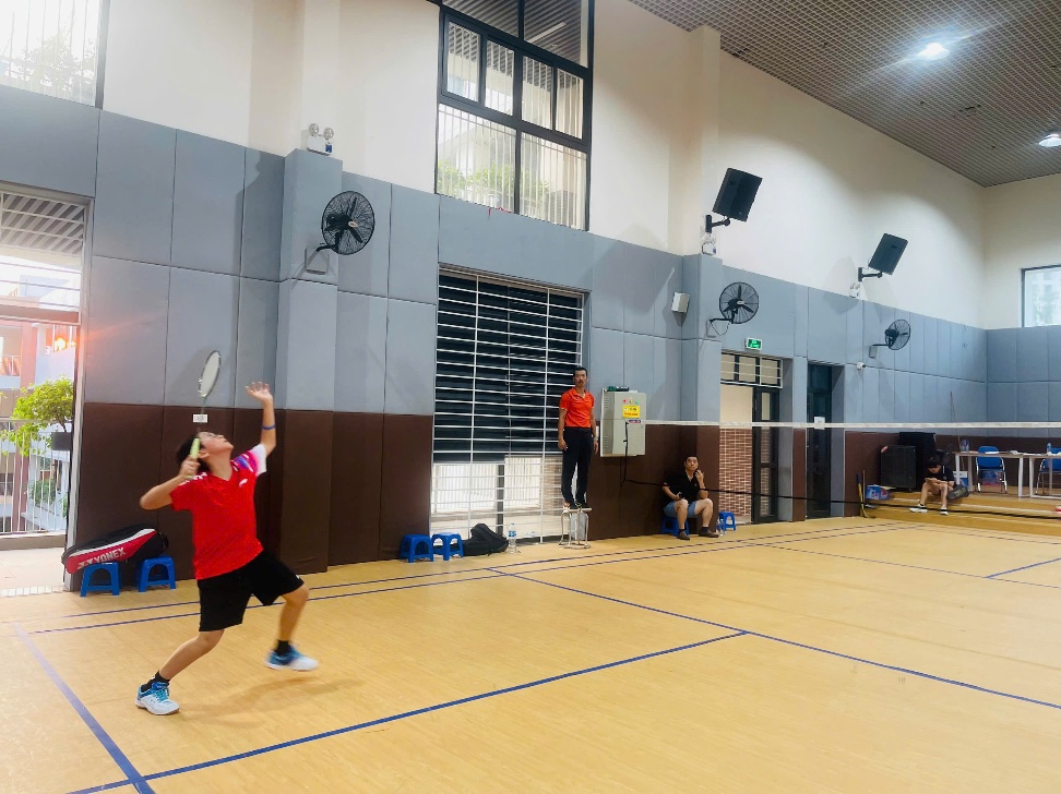 Tại nhà đa năng tầng 4 nhà D, các trận đấu cầu lông đã diễn ra sôi động, với những pha đánh cầu đầy kịch tính.