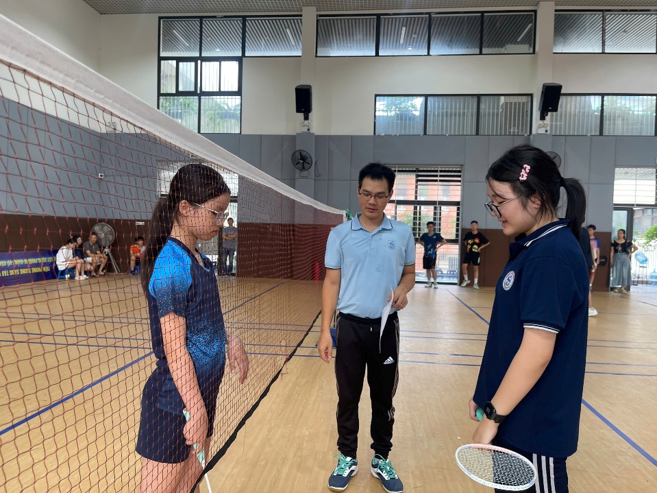 Hai nhà vô địch cầu lông nội dung Nam – Nữ khối 8-9 cùng trọng tài